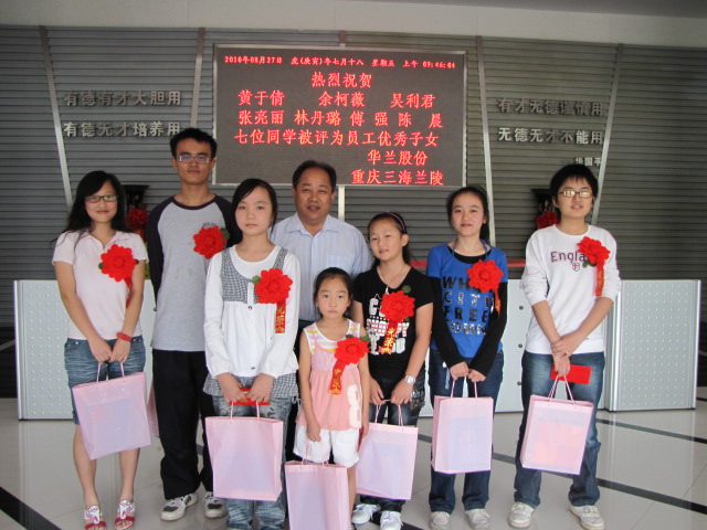 永利yl23411一直有着一份自己的坚持,坚持以员工为本,坚信员工就是永利yl23411的力量,可以战胜一切困难,坚信“有知识才有出路”。为此,公司决定给予辛勤员工更多的回报,鼓励所有员工子女热爱学习,为体现公司“尊重知识,尊重人才”的理念,从2005年起,公司每年支出一笔奖学金,今年8月27日,在重庆市涪陵三海兰陵有限公司行政楼会议室,举行了2010年上半年度员工优秀子女表彰大会。