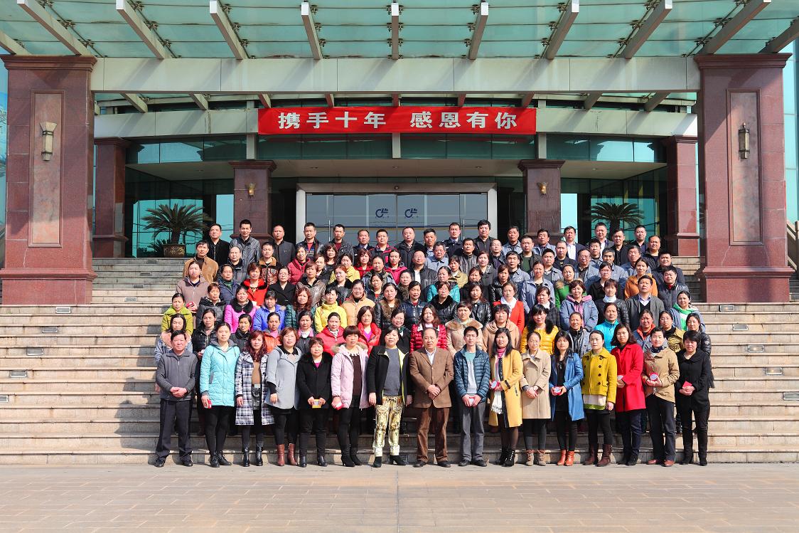 2014年3月15日,在公司行政二楼举行了以“携手十年,感恩有你”为主题的发放纪念金条活动。在此次活动中,共有121名为公司服务十周年以上的老员工获此福利并与董事长一起共享此次盛会。