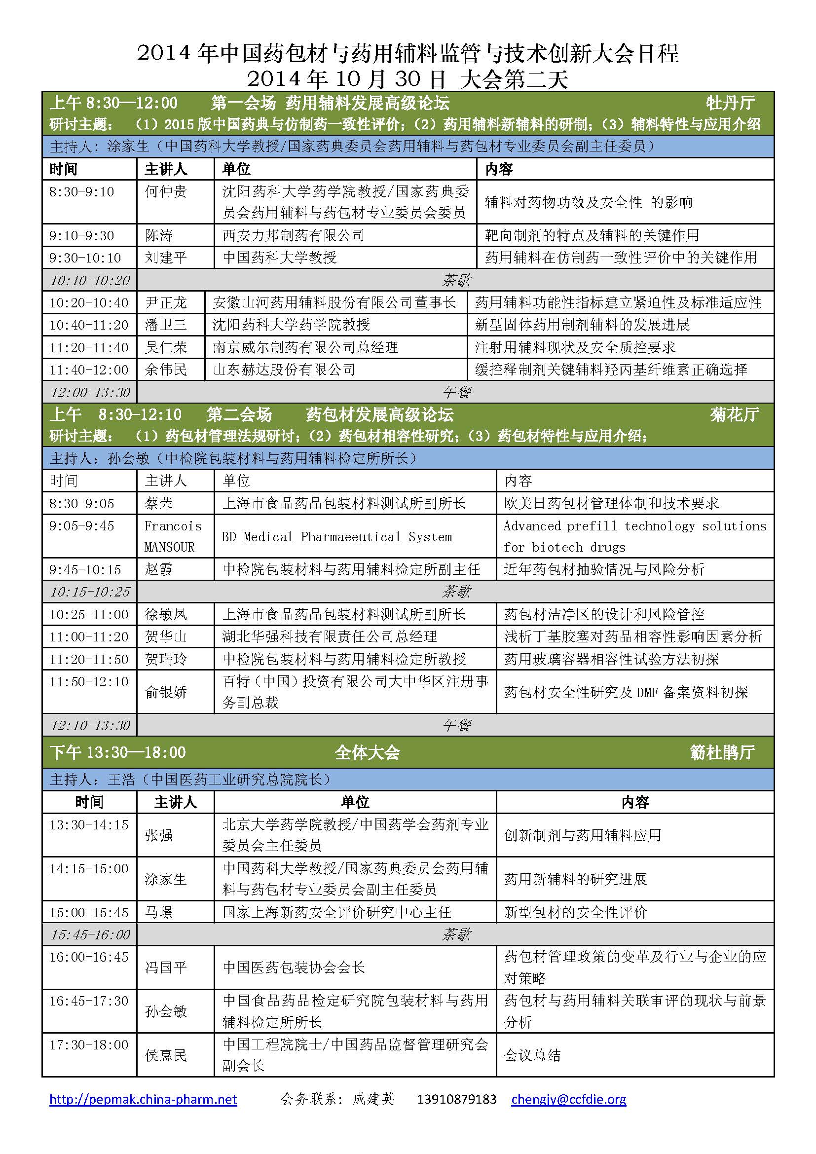 2014年中国药包材及药用辅料监管与技术创新大会日程