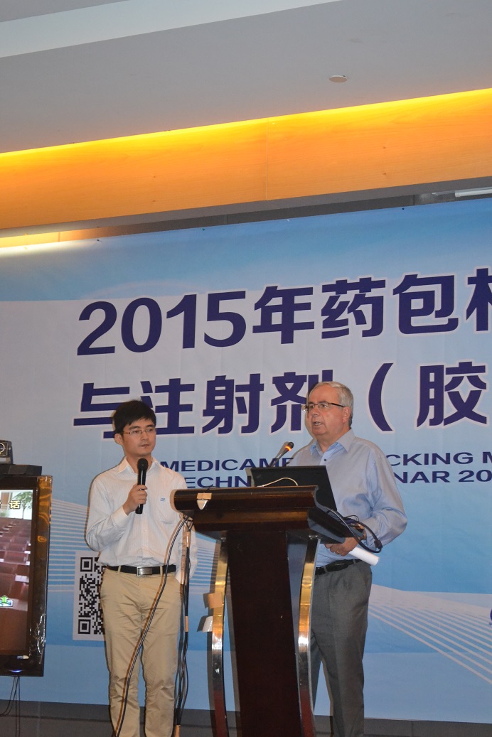 我公司还特别安排了永利yl23411技术经理朱银华博士就注射剂首选覆膜胶塞的技术要求及覆膜胶塞在应用中的注意事项做专题介绍,专业的数据分析,敏捷的思路让朱博士的讲解得到了与会代表的一致认可。为保证技术研讨会效果,公司还请来了五十多年来在欧洲从事注射剂内包材瓶塞技术研究、DMF技术审评的奥托博士、贾米尔先生与大家交流互动,奥托、贾米尔先生就胶塞成分对药品的影响及如何满足欧洲药包材DMF文件的编制及标准,国际市场对胶塞的选用、应用与国内的区别做现场互动交流。交流中,专家代表们热情提问,通过交流对欧美的DMF备案有了更深入的认识。