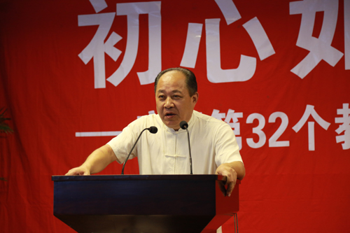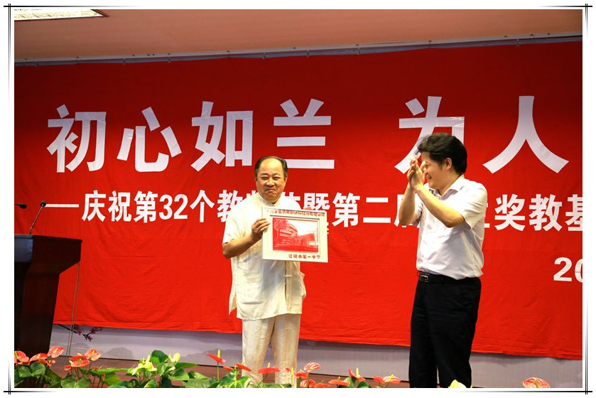 华董事长首先指出,教育是一件非常重要的事情,因为会伴随每个人的一生,对在教育一线辛勤付出的老师们表达了诚挚的感谢与节日的祝贺。接着,从社会需求的角度,给老师们提出两点期望:一、进一步加强学生的品德素质教育;二、注重提高学生的自学能力。最后,华国平先生真诚祝愿一中学校好、学生优、师资专,也祝江阴教育越办越好。华老先生儒雅的风度、真诚的发言赢得了领导、老师们一阵阵热烈的掌声。
