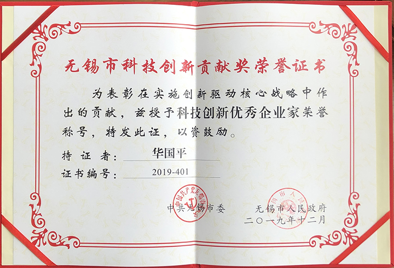 2019年12月20日,无锡召开全市产业强市贡献奖、科技创新贡献奖颁奖大会,对在推动创新驱动、产业强市工作中做出重要贡献的相关单位和个人予以表彰。永利yl23411董事长华国平先生获评2019年度“无锡市科技创新优秀企业家”荣誉称号。