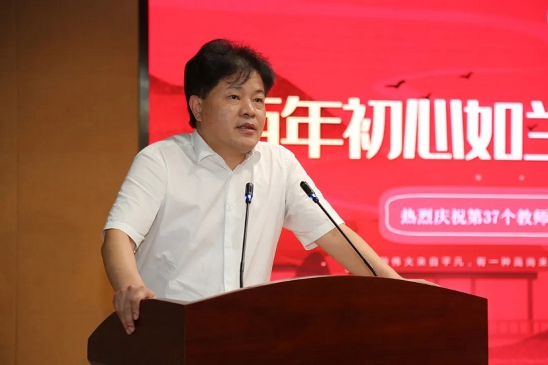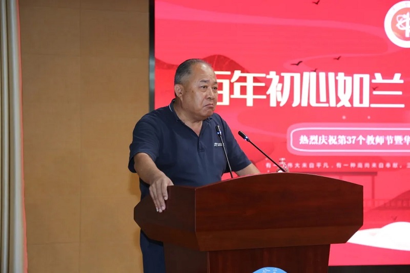 接着华国平董事长上台,先深深鞠了一躬,表达对一线教师的敬重和感谢。感谢所有在教育的天地里默默守望的老师们。在讲话中尤其是对奋战在班主任岗位上的老师们由衷的敬意,表达了对老师们最诚挚的祝福。接着他鼓励大家做一名有家国情怀的人民教师。企业需要不断优化产业,增强竞争力,教育更需要每一位教育工作者勤于思考,提高课堂效率,因材施教,提升学校办学品质。华国平先生的发言诚挚而充满了力量,赢得了领导、老师们热烈的掌声。