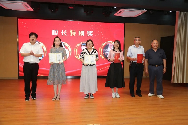 最后李忠校长宣读“校长特别奖”,永利yl23411董事长华国平和李忠校长一同为获奖老教师们颁发证书。